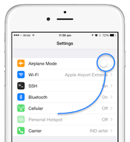 4) Enable Airplane Mode in your iOS device and disableFind My iPhone and Touch ID